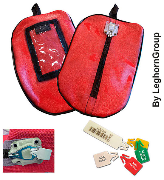 The bag is equipped with a special zipper stopper, which can in turn be locked with a sequentially numbered security seal called ZIP STOP.